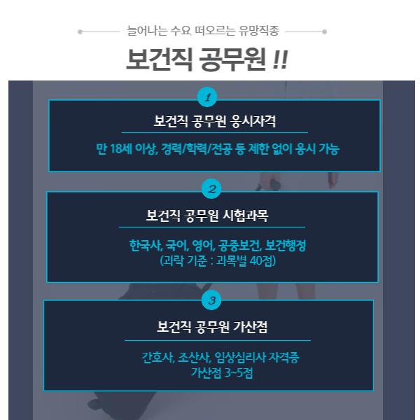 국민 건강 증진과 복지 증진이 매우 중요한 사회적 가치로 인식되면서 보건분야에서 일하는 공무원의 수요가 증가하고 있어 보건직 공무원의 전망이 아주 밝은데요, 전문적이고 안정적인 보건직 공무원에 대해 알아보고 수강료 지원을 받을 수 있는 방법도 알아보도록 하겠습니다.
